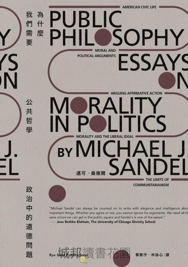 ◆桑德爾總是能針對重要議題寫出優雅而睿智的文章。不管你同意與否,你都無法忽視他的論點。在公共廣場上,我們需要所有明智的發言,而桑德爾的發言再明智不過。