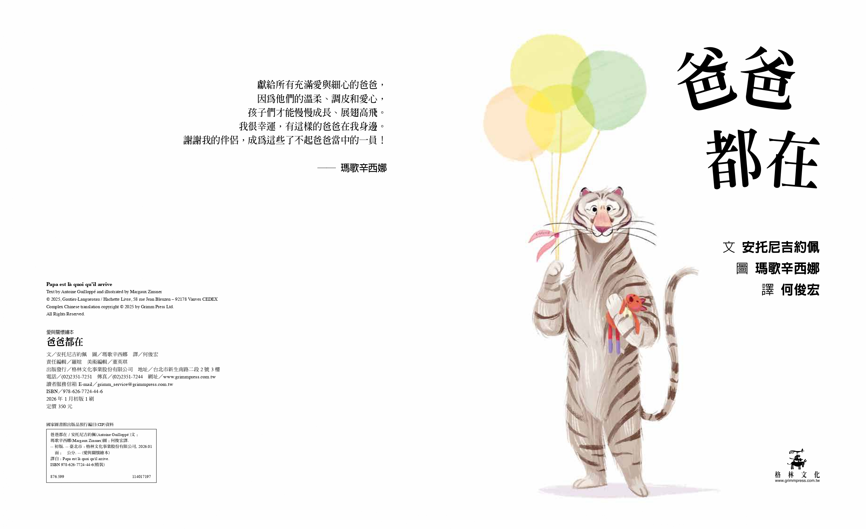 「我特別喜歡爸爸在媽媽上班時照顧小老虎的設定,充滿了現代氣息。這也是一首頌歌,獻給所有陪伴孩子成長的爸爸。描繪了那些看似平凡卻飽含深情的瞬間,溫柔展現父親對孩子無條件的愛。」