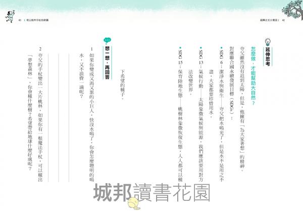 十二則古文像一株株奇花異果,既有原文注釋,亦有活潑的新編故事,還把SDGs的思辨種子悄悄埋進每一篇精采絕倫的故事裡頭,孩子們可以笑著讀完千字小短篇,老師和家長則能用閱讀素養題與古文培養素養,溫柔地把國語文能力醞釀、提升。