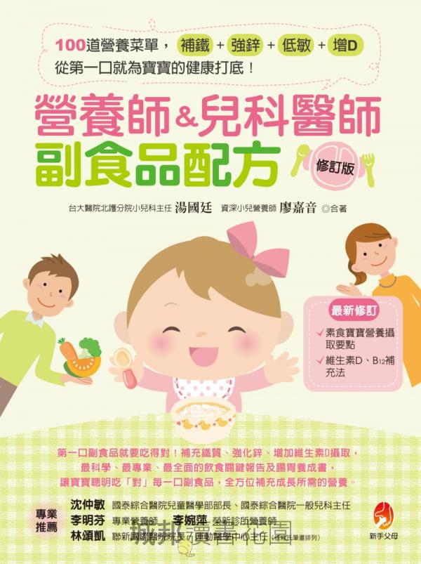 資深小兒營養師 育有一子一女。原本就十分關心幼兒的營養問題,在兒女出生後運用營養學專業將兒女養得健康高壯,希望藉由營養師媽媽二次親自餵食的實務經驗帶給家長幫助,為副食品的餵食過程營造一段美好的記憶。 〔現職〕 高雄長庚紀念醫院 專員 〔曾任〕 高雄市立鳳山醫院(委託長庚醫療財團法人經營)營養師 台北馬偕紀念醫院營養課臨床組組長 台北馬偕紀念醫院營養醫療小組營養師、婦兒專科營養師 相關著作:《營養師&兒科醫師副食品配方增訂版──100 道營養菜單,補鐵、強鋅、低敏、增D,從第一口就為寶寶的健康打底!》《營養師&兒科醫師副食品配方》注意事項