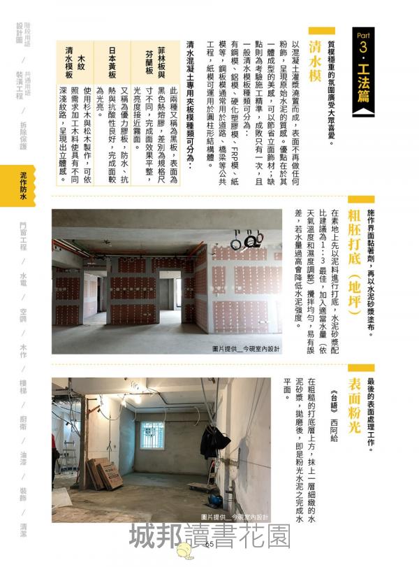 從設計圖紙、工班現場,到各類材料設備與工法技巧,皆有清楚的解釋與圖解。