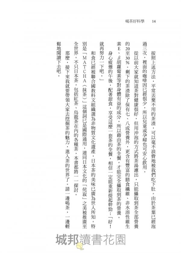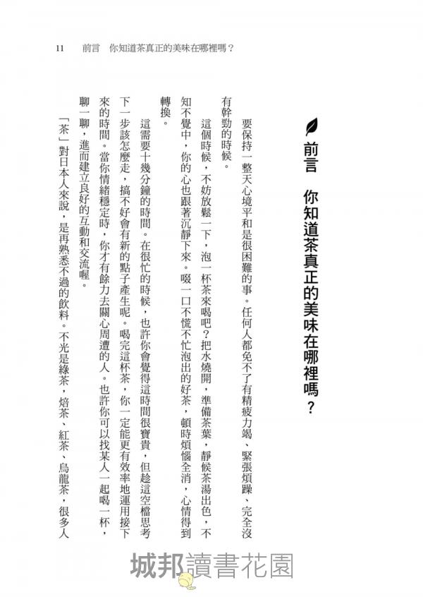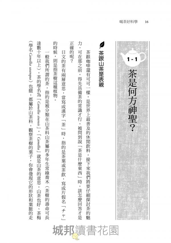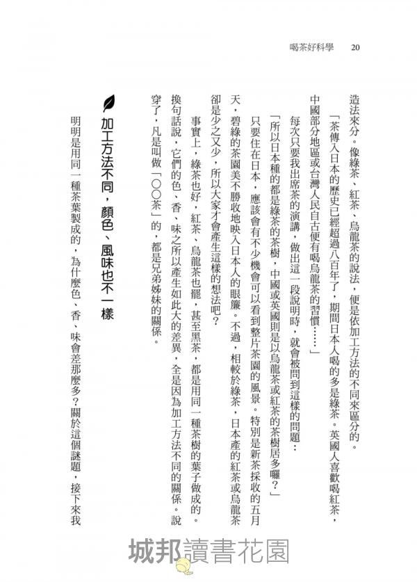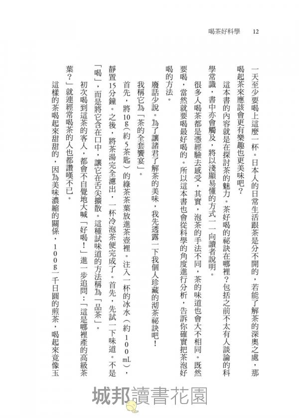 這本書的內容就是在探討茶的魅力。茶好喝的秘訣在哪裡?包括之前不太有人談論的科學常識,書中亦會觸及,將以淺顯易懂的方式一一向讀者說明。