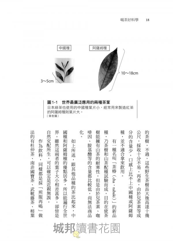 茶樹的品種五花八門,據說光是山茶屬的茶樹就有數百種,然而,目前世界最廣泛運用的茶樹有兩種,分別為中國種與阿薩姆種(圖1-1)。看圖片就知道,中國種的葉子小,葉長約3〜5cm;阿薩姆種可達10〜18cm,葉子大是其特點。