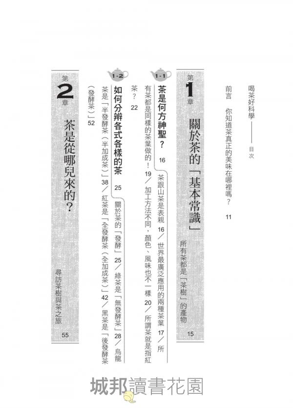 本書由研究茶長達50年的「茶博士」所撰寫,從茶的起源與製程談起,利用科學儀器測量數據,分析各類茶的香氣成分,歸納最佳沖泡次數、浸泡時間、茶葉量、熱水溫度。