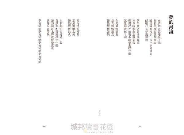 舞台上他將自身狂狠地拋往聽者,詩集裡的他則緩緩傾訴,是一名寧可背對讀者而讓出解釋權的詩人。詩也是活的,放心閱讀、理解吧──他將成為每個人的身影。