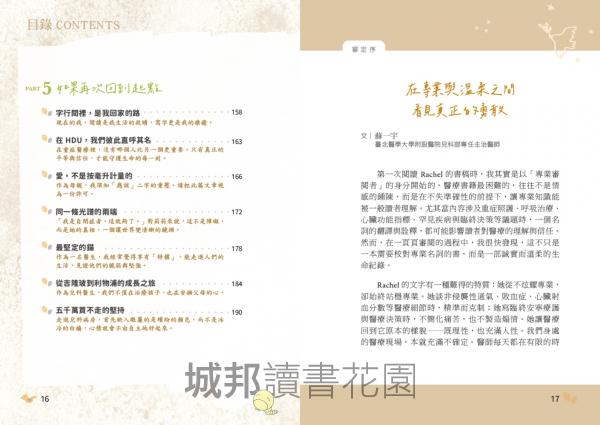 如果你是家長,這本書能幫助你理解醫療決策背後的思考;如果你是醫學生或年輕醫師,它會提醒你,在專業之外,還有同理與謙卑;如果你正走在人生的低谷,也許會在某一頁文字裡,找到一點力量與陪伴。感謝 Rachel 願意將這些故事整理成冊。在專業與溫柔之間,她示範了一種行醫的樣貌:理性清晰、情感節制,卻始終保有溫度。誠摯推薦給每一位願意認真生活、認真面對生命的人。